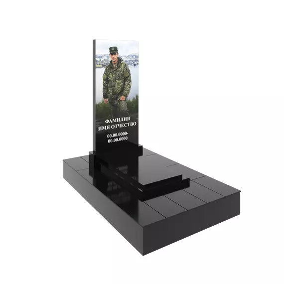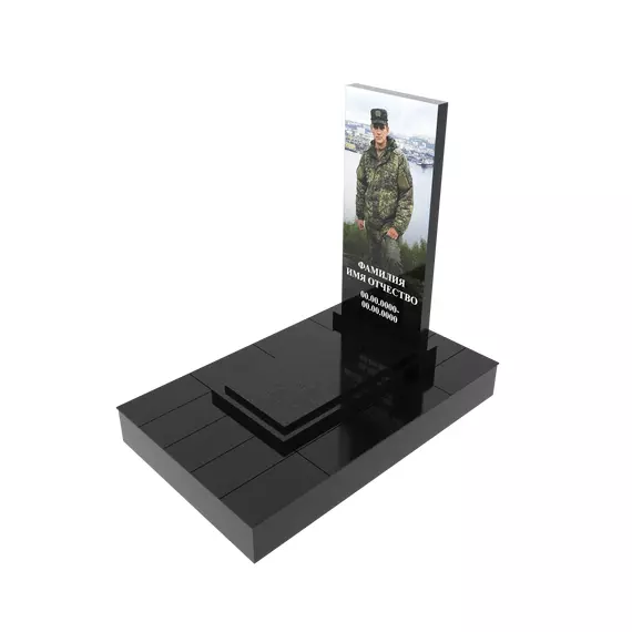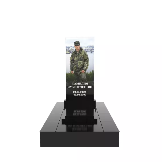 Гранитный подиум 150 × 240 см, высота 30 см, стеклянный портрет в полный рост
