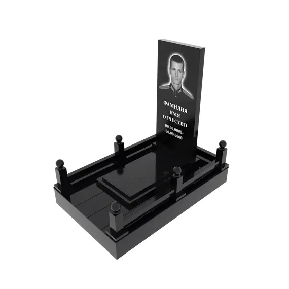 Гранитный подиум 150 × 240 см, высота 30 см, гравировка полурост, столбики и шары