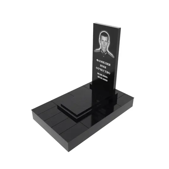 Гранитный подиум 150 × 240 см, высота 30 см, гравировка портрета полурост