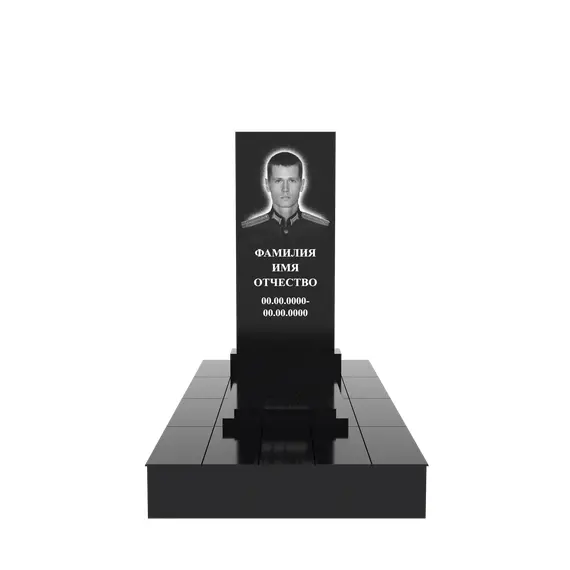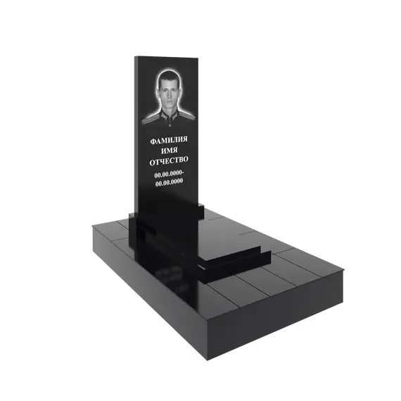 Гранитный подиум 150 × 240 см, высота 30 см, гравировка портрета полурост