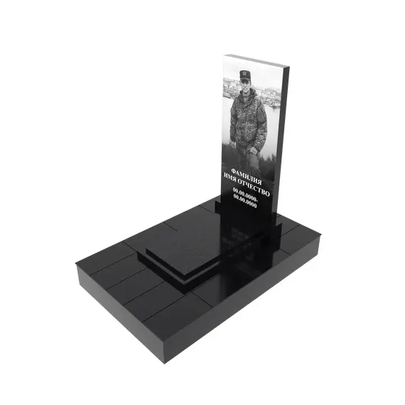 Гранитный подиум 150 × 240 см, высота 30 см, гравировка портрета в полный рост
