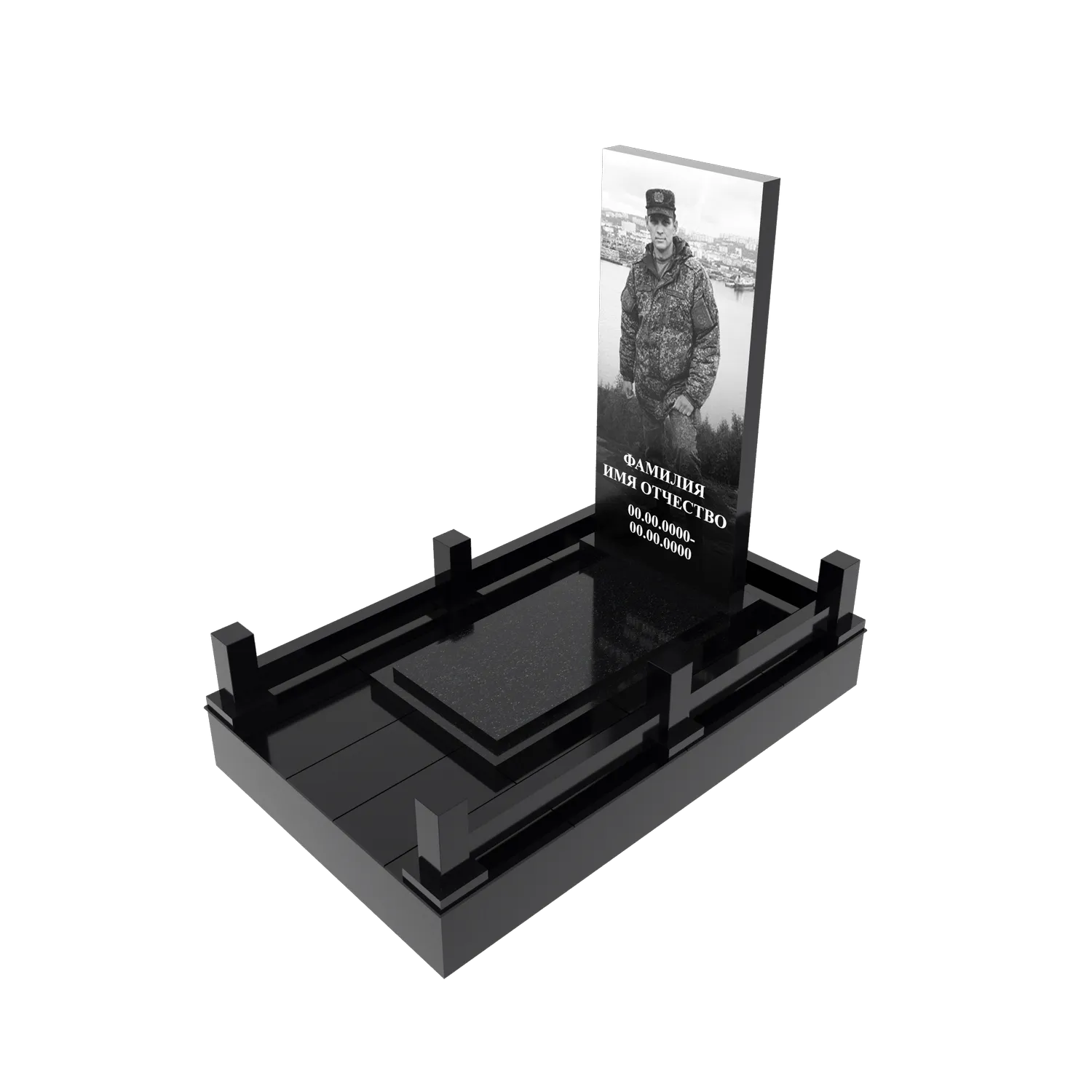 Гранитный подиум 150 × 240 см, высота 30 см, гравировка портрета в полный рост, столбики и перемычки