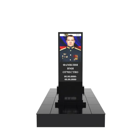 Гранитный подиум 150 × 250 см, высота 30 см, стеклянный портрет полурост