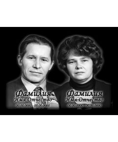Прямоугольный (горизонтальный) портрет на двоих с надписью в рамке изготавливается на стекле по специальной технологии с обжигом. Изделие проходит цикл обжига при температуре 600*С. Разработанная методика установки позволяет без резки «в нишу» за 20 минут установить портрет на памятник...