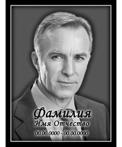 Прямоугольный (горизонтальный) портрет с надписью в рамке изготавливается на стекле по специальной технологии с обжигом. Изделие проходит цикл обжига при температуре 600*С. Разработанная методика установки позволяет без резки «в нишу» за 20 минут установить портрет на памятник любых видов,...
