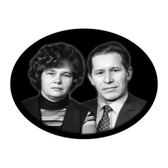 Овальный (горизонтальный) портрет изготавливается на стекле по специальной технологии с обжигом. Изделие проходит цикл обжига при температуре 600*С.