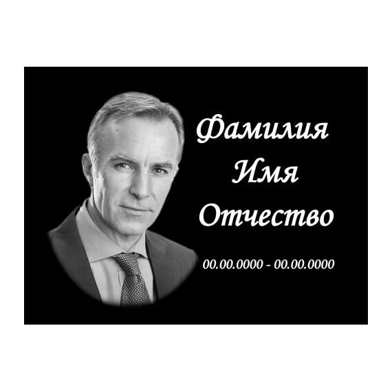 Прямоугольный (горизонтальный) портрет с надписью в рамке изготавливается на стекле по специальной технологии с обжигом. Изделие проходит цикл обжига при температуре 600*С.
