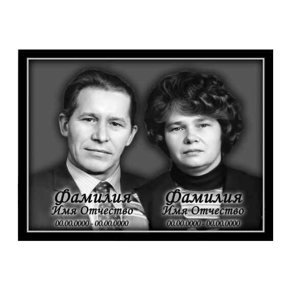 Прямоугольный (горизонтальный) портрет на двоих с надписью в рамке изготавливается на стекле по специальной технологии с обжигом. Изделие проходит цикл обжига при температуре 600*С.